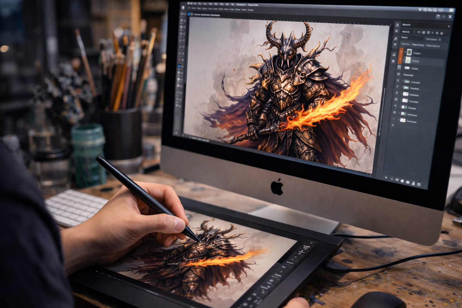 Een creatieve studio voor artistiek maatwerk, gevestigd in Tielt, België. Wij brengen ideeën tot leven met unieke illustraties, hoogwaardige 3D-creaties, zorgvuldig geschilderde miniaturen en exclusieve merchandise.